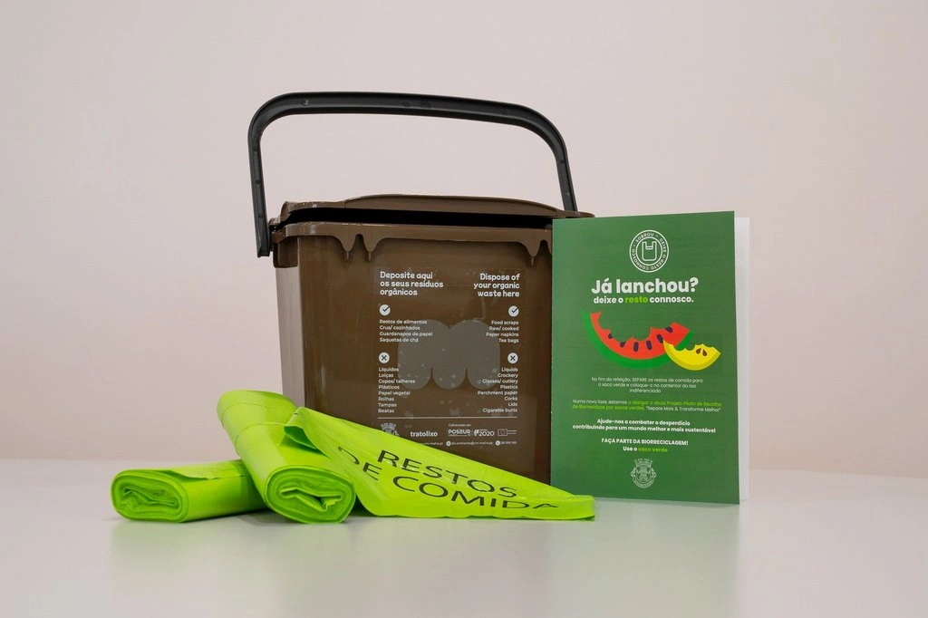 Dedicado à recolha de biorresíduos por co-coleção (sacos verdes).